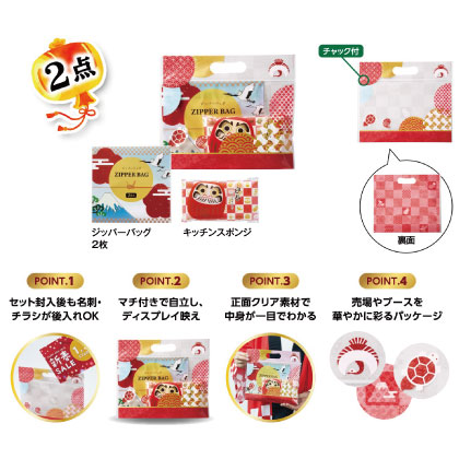 かわいいヨコ型福袋が新登場!!お客様の方でチラシや新製品などをセットしていただくこともできるようチャック袋にしました!