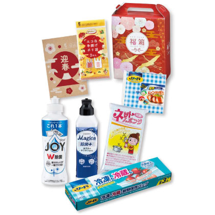 商品詳細備考 | <セット内容>P&G除菌ジョイコンパクト170ml(さわやか微香)×1、ライオンCHARMYMagica220ml(除菌+)×1、ライオンリード冷凍も冷蔵も新鮮保存バッグS3枚×1、ネットスポンジ×1、めでたいエコな手提げポリ袋2枚入×1、迎春柄紙製水切り袋1枚×1、ライオンリードクッキングペーパー小4枚×1 ※ネットスポンジは4色不均等アソートになります。 ※カートン割れ不可 |