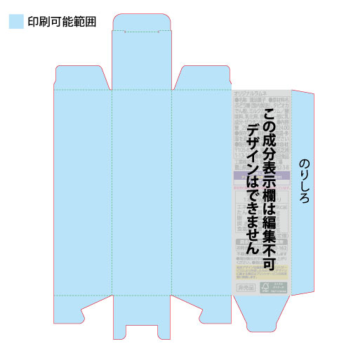 | 商品詳細備考 | 【価格表(税別)】 100個 @442 200個 @330 300個 @319 500個 @280 1,000個 @222 2,000個 @188 ※沖縄・離島・一部地域への配送は別途送料 ※色校正が必要な場合は、別途費用10,000円(税別)がご負担となり、納期が1週間程度加算になります。 【納期】 デザイン決定後約3週間~ 【賞味期限】 おおよそ納品月+4カ月程度。 ≪成分表、アレルギー関連情報等は下記よりご確認ください≫ 森永公式サイト 【禁止事項】 転売目的でのご利用や、無許可でSNSやチラシ等への掲載はお止めください。 SNSやチラシ等への本商品の掲載には、メーカーの事前確認が必要になります。 公開前に必ずご連絡をお願いいたします。 【注意事項】 18歳未満の方が利用することのできない一部のサービスを提供されている場合や、 森永製菓株式会社が本件サービスを受託することを適切でないと判断した場合には、 ご注文をお受けすることができない場合がございます。予めご了承ください。 告知物へ商品名を記載する場合は、御社名と併せて「オリジナルデザインの〇〇〇(商品名)」とご記載ください。 ※例:NG・・・販促商事オリジナルハイチュウプレゼント! OK・・・販促商事オリジナルデザインのハイチュウプレゼント! QRコードを印刷する際は、サイズが15mm以上で背景色白にて作成ください。 条件以外の内容で作成されたQRコードを含むデザインの場合、読み取りできない可能性があります。 【賞味期限について】 製造工程の都合上、外箱に記載の賞味期限よりも長い賞味期限のラムネ本体が封入されている場合がございます。 ラムネ本体に記載の日付が実際の賞味期限となります。 品質に問題はございませんので、安心してお召し上がりください。 【その他】 ※こちらの商品は分納対応不可となります。 ※商品は予告なしにメーカー欠品または廃盤になる可能性がございます。 ※メーカーの基準に基づき印刷前にご利用審査を行い、内容によってはご注文をご遠慮させて頂く場合がございます。予めご了承ください。 |